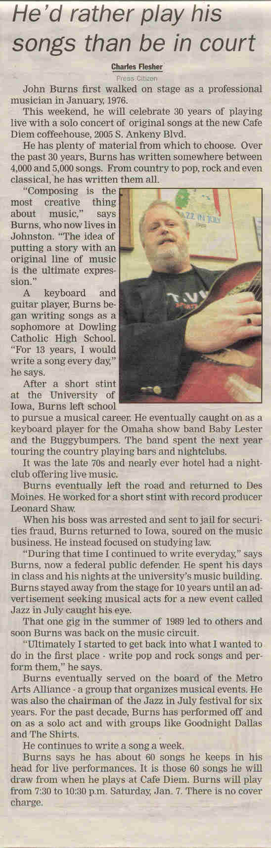 B. JOHN BURNS, Songwriter (Des Moines music)