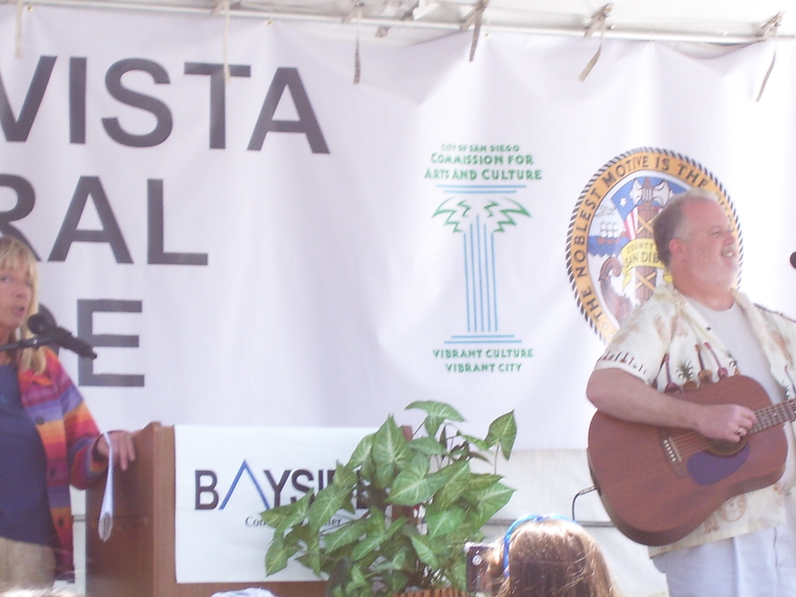 John Burns introduced by San Diego City Councilperson Donna Frye to perform for the opening ceremony of the April 26, 2008 Linda Vista Multicultural Fair .